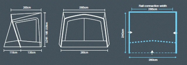 Brand new for 2019, Outdoor Revolution’s ‘Sportline Canopi’ is a sealable sheltered canopy/porch area, designed specifically to fix to the majority of campervans, providing a private extension of usable living space on those touring holidays. It is crafted from a waterproof 180HDE fabric, plus utilises a single adjustable steel pole frame to ensure maximum stability and support. Expansive crystal-clear PVC windows permit an excellent vista of the surrounding outdoors, whilst zip back side doors ascertain ease of access to and from the vehicle. The canopy comes complete with reflective storm straps and steel pegs.